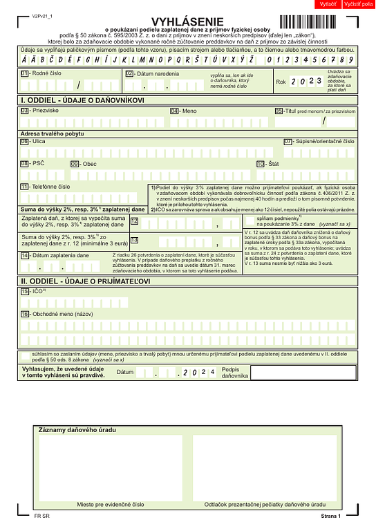 - do 31. marca 2025 – Podanie daňového priznania pre fyzické osoby, ktoré si sami podávajú daňové priznanie, a právnické osoby. Vyhlásenie je súčasťou daňového priznania.